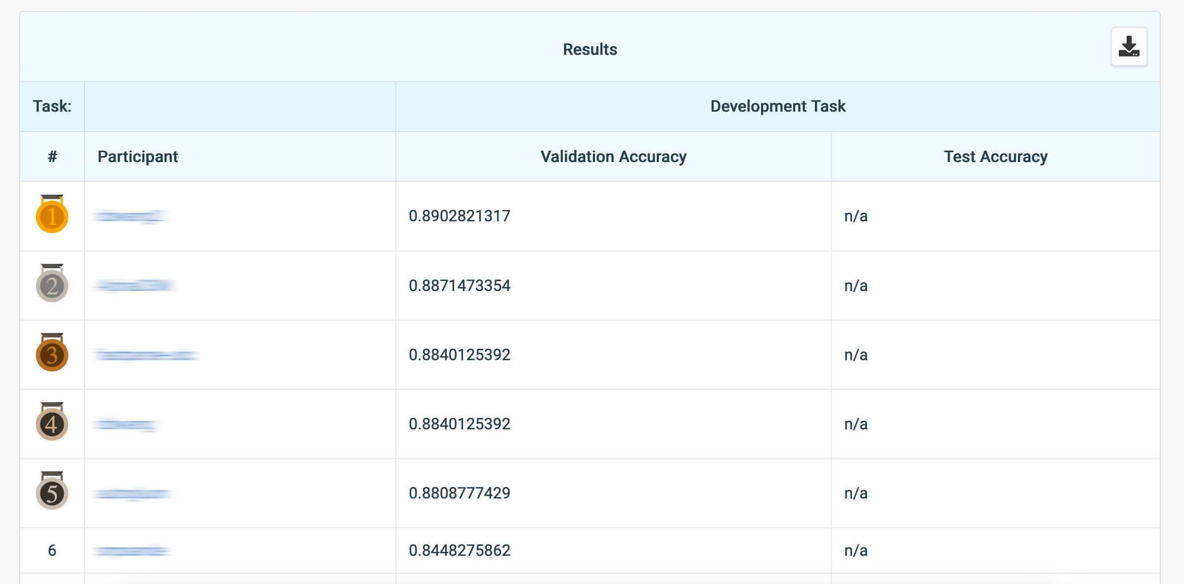 - Click the My Submissions tab. Here, you can access the data that has been provided by the benchmark organizer.