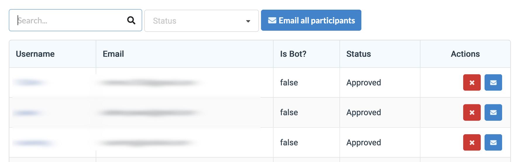 From here, you should be able to: - Email all participants - Approve/Deny participants - Revoke participants
