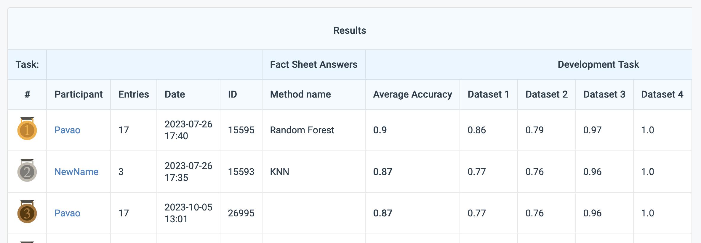 This view contains the leaderboard results.